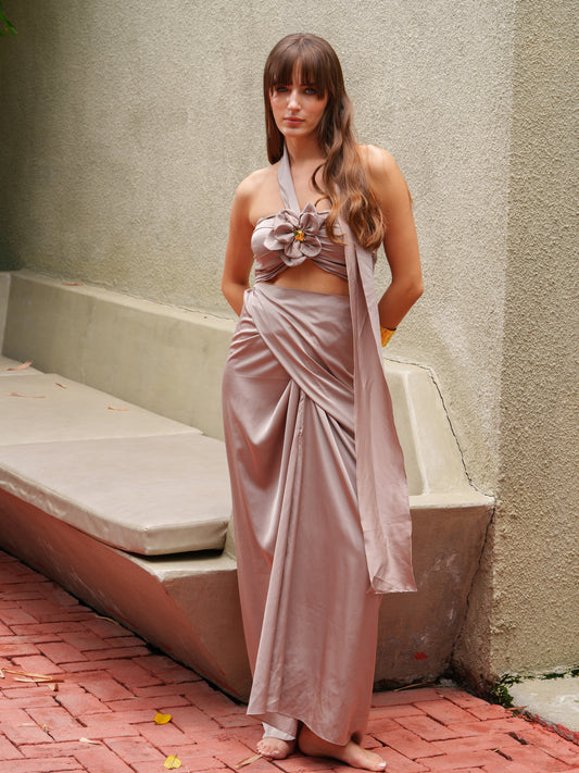 Abigail - Co-ord set with flower detailed tube and wrap skirt