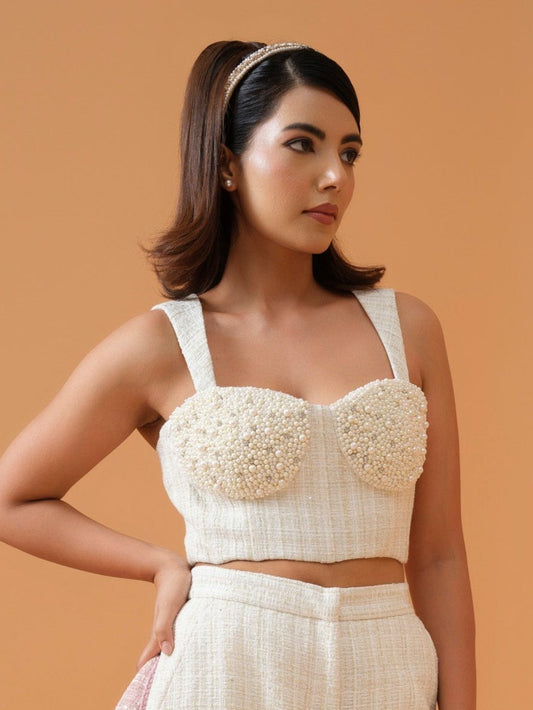 Aquessa Co-ord set- White Tube top and bodycon slit skirt with intricate embrodiery