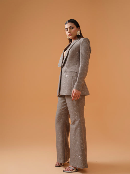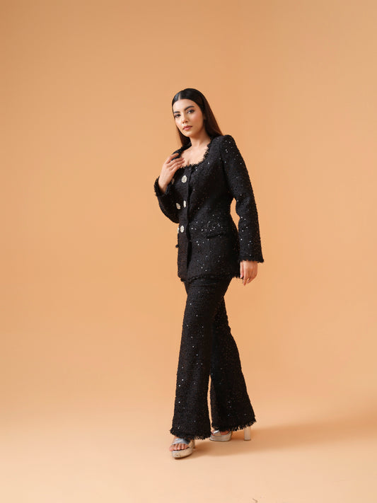 VIOLETTA - Co-ord set jacket with metal buttons paired with flare pant