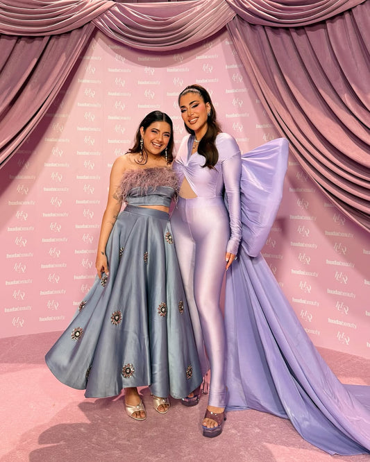 Mrunal Panchal in Dove Co-ord set with Tea length skirt and Ostrich feather bustier