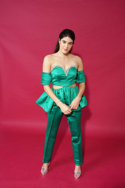 Aquaire Co-ord set- Black Tube top and bodycon slit skirt with intricate embrodiery