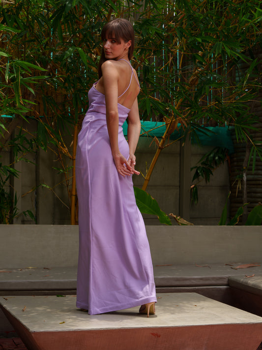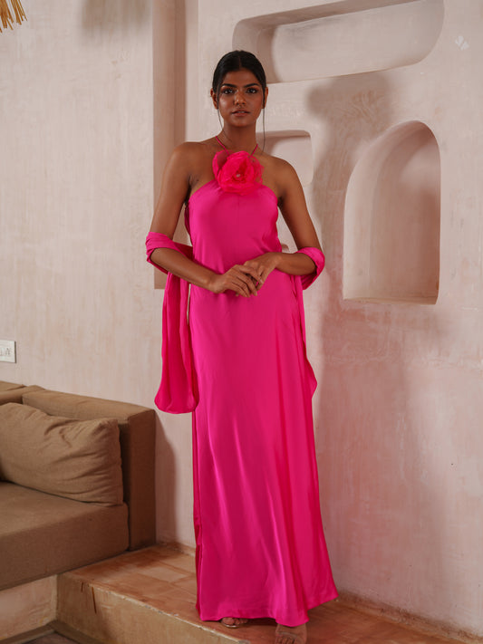 Pryanca in Elsa Halter slip dress with flower detailing