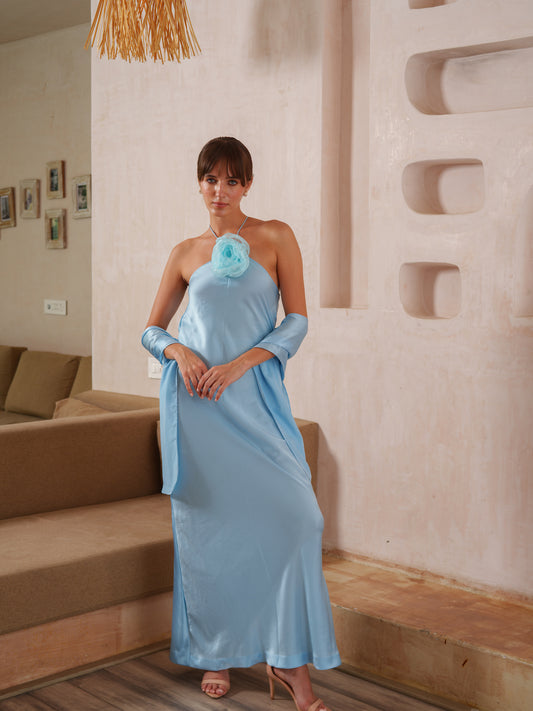 Ana - Halter slip dress with flower detailing