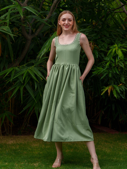 Perle - Drop waist mini dress with stone and pearl detailing